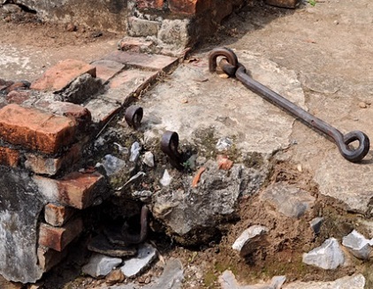 Dấu tích gông cùm ở nhà ngục Sơn La. |