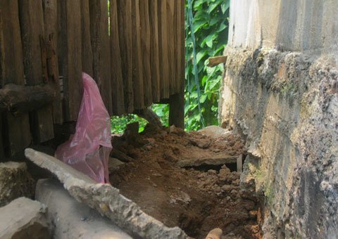 | Hiện trường phía sau nhà nơi giấu vàng Luyện cướp được (Nguồn: Tuổi trẻ) |