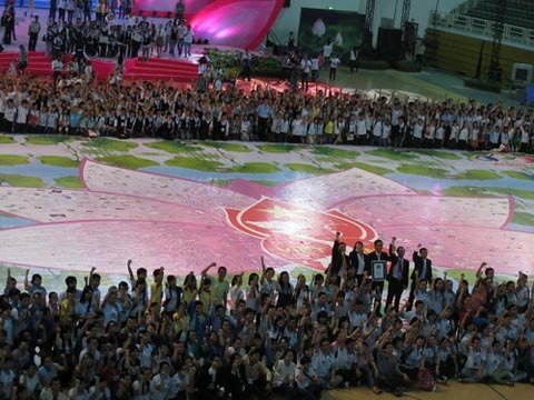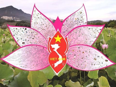 Bức tranh này được ghép bằng tay, do 1.600 sinh viên ĐH Kinh tế TP. HCM thực hiện trong vòng 17 giờ liền (từ 7h30 sáng 24/9 đến 0h26 ngày 25/9). Tác phẩm được thiết kế theo hình bông sen hồng 6 cánh tượng trưng cho 6 lĩnh vực (Con người, Địa lý, Lịch sử, Kinh tế, Văn hóa, Giáo dục) ôm trong lòng bản đồ nước Việt.