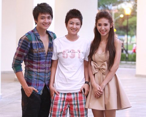 | Ngô Kiến Huy và bầu show Thúy Vinh (giữa) (Nguồn: Kênh 14) |
