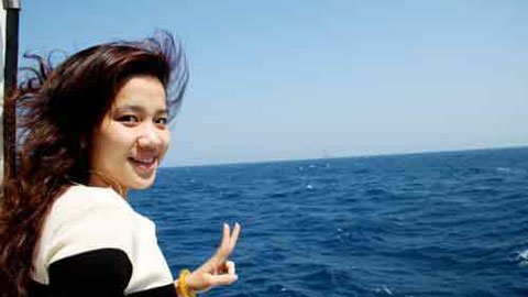 Vượt qua những ngọn sóng cao tới 5-6m vì áp thấp, cô nữ sinh năng động và xinh xắn Thu Thảo cùng phái đoàn đã có chuyến đi không thể nào quên.