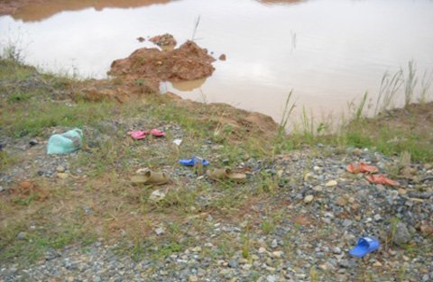 | Dép của các cháu bé vẫn còn để lại trên bờ (Ảnh: Lao động) |