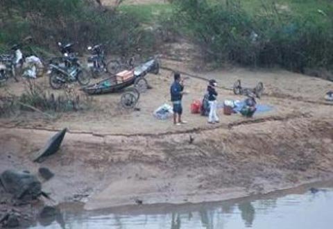 máy, 2 cặp học sinh và 2 đôi dép nằm trên cầu. Nghi có người nhảy cầu, người dân nhanh chóng báo cho công an địa phương. Ngay