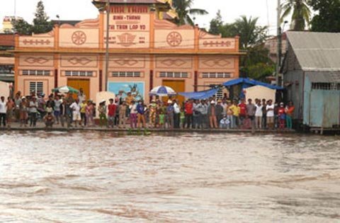 sông đoạn bờ Hòa An (huyện Chợ Mới, tỉnh An Giang) và bờ Lấp Vò (tỉnh Đồng Tháp)