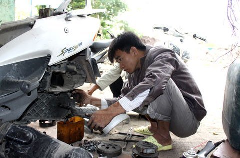 phụ giúp Lợi sửa chữa xe máy cũng vừa để học nghề, vừa để “giết thời gian”.