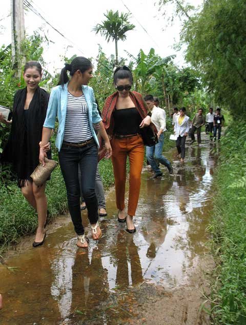 lầy lội và ngập nước trên đôi giày cao gót. Hành động của các cô thật cảm động