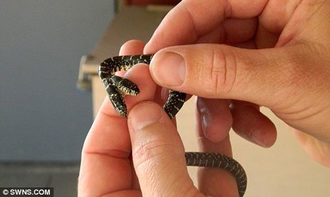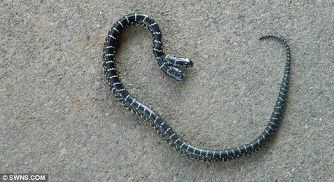 Ông Paul Carver, sống ở Clarksville, bang Tennessee (Mỹ) đã tiến hành phun thuốc diệt cỏ cho khu vườn nhà mình sau khi ông phát hiện có một vài con rắn nhỏ đang cư trú tại đây. Tuy nhiên, sau khi phun thuốc, ông đã kinh hãi khi phát hiện một con rắn da đen vằn, bé xíu và có hai cái đầu. Con rắn này trông có vẻ khó khăn khi di chuyển với hai cái đầu, nhưng lại không hề tỏ ra hung dữ.