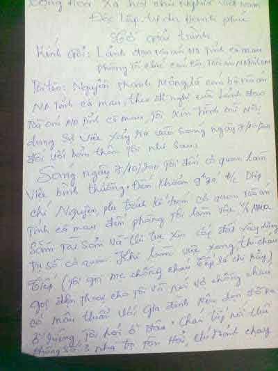 Tờ giải trình của ông Nguyễn Thanh Mộng. (Ảnh: Người lao động) |
