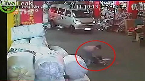 | Chiếc xe tải thứ 2 tiếp tục cán lên người em bé |