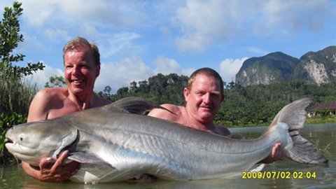 | Con cá tra dầu (ba sa) sông Mekong này bị bắt ở Thái Lan năm 2005, nặng gần