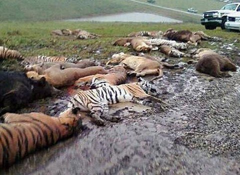 chó sói, gấu đen… đã sổng chuồng. 48 con trong số đó đã bị bắn chết, trong đó có
