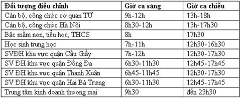 Sinh viên các trường đại học ở các quận Cầu Giấy, Đống Đa, Thanh Xuân và Hai Bà Trưng cũng được điều chỉnh giờ vào/tan học lệch giờ nhau.