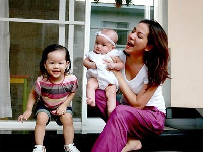 | Ngọc Thúy và hai con gái với chồng cũ |