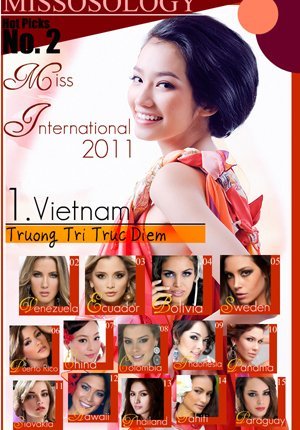 Trúc Diễm được trang Missosology đánh giá là ứng cử viên số 1 cho danh hiệu Hoa hậu Quốc tế 2011.