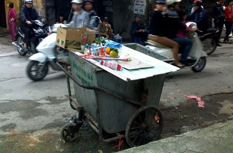 | Bàn thờ được lập ngay tại thùng rác phát hiện thai nhi xấu số (Nguồn: Bưu điện Việt Nam) |