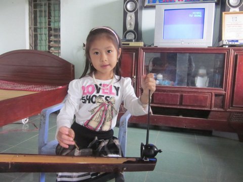 Hay hơn nữa là từ khi biết chơi đồ chơi, bố mẹ cháu đã mua rất nhiều đồ vật nhưng Hoàng Anh chỉ say sưa với mỗi chiếc đàn bầu nhựa.