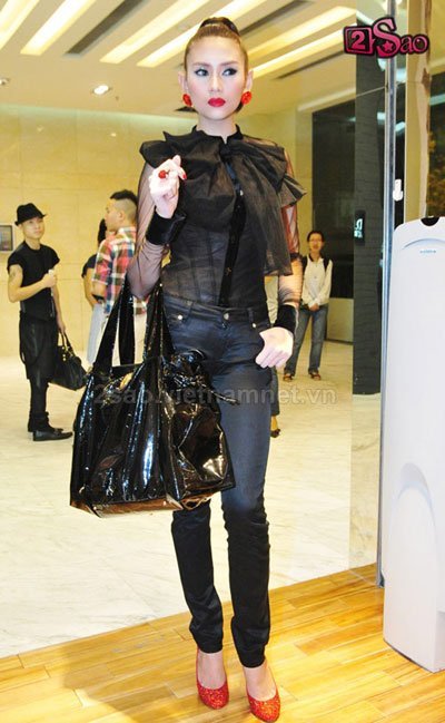 | Á hậu Võ Hoàng Yến với đôi giày đỏ gắn đá màu đỏ của hãng Christian Louboutin giá 4.000 USD |