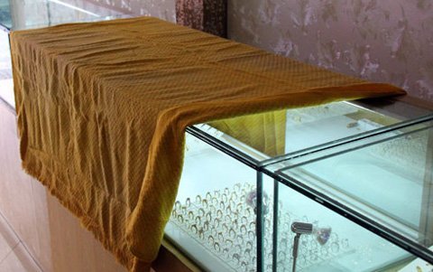 Sau khi lấy một số đồ ở bàn ăn tầng 2 của gia đình, kẻ gian lần theo cầu thang xuống quầy bày bán nhẫn, dây chuyền vàng, đá quý ở tầng 1 và chỉ lấy số trang sức ở những tủ kính không khóa. Theo suy đoán, vì tên trộm này còn non gan, sợ gây tiếng động làm gia chủ thức giấc nên chỉ lấy số tài sản trong những chiếc quầy không khóa. Ước tính tổng giá trị số vàng lên tới gần 300 triệu đồng.