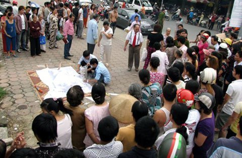 một phụ nữ nổi trên hồ Xã Đàn (còn gọi là hồ Nam Đồng). Sự việc nhanh chóng được báo cho cơ quan chức