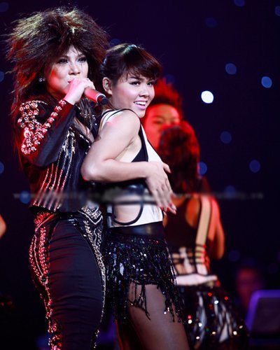 | Sau đó, Thanh Thảo và vũ công nữ đã có màn rất tình tứ với nhau trên sân khấu khiến nhiều khán giả mắt tròn mắt dẹt theo dõi (Ảnh: afamily) |
