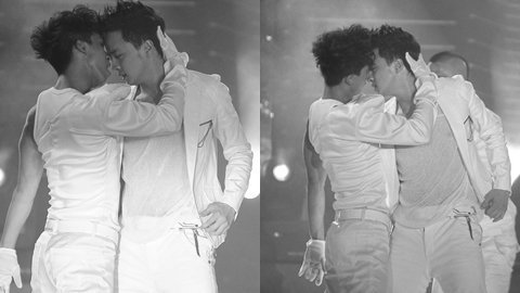 choáng váng với màn vuốt ve vũ công nam như một cặp tình nhân đồng giới. |