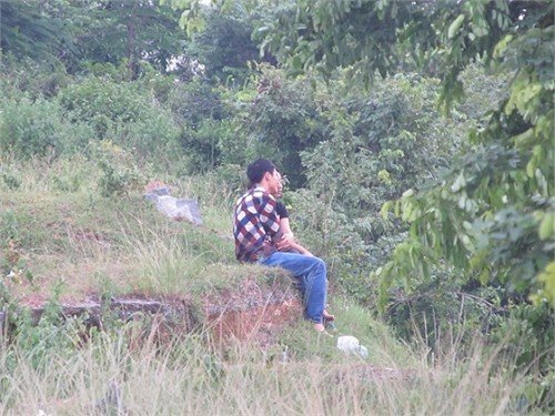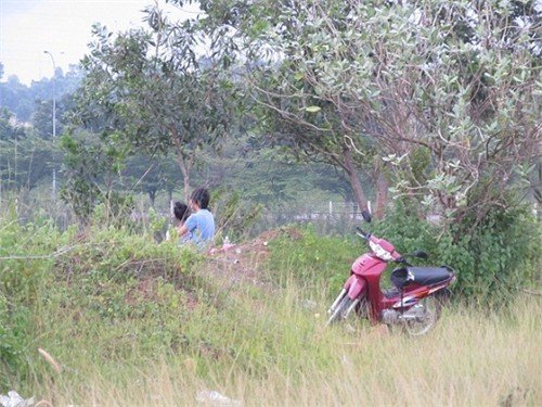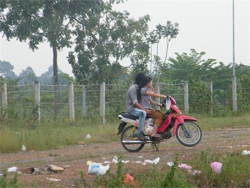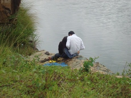 Từng cặp đôi dựng xe ngồi tâm sự ngay sát hồ đá