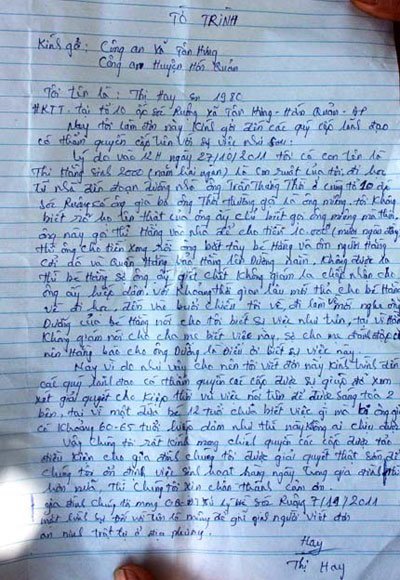 | Đơn tố cáo của mẹ cháu H. gửi cơ quan chức năng (Ảnh: VTC News) |