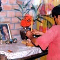 Anh Nguyễn Văn Hiệp bên bàn thờ vợ.