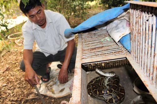 Anh Hòa còn dẫn chúng tôi sang nhà ông Đông để được nghe ông thanh minh. Ông Đông bảo: "Con trăn tôi đang nuôi cũng đã được hơn chục cân. Mấy năm trước có mua lại của một người đi cày ruộng bắt được. Tôi muốn bán lâu rồi nhưng khổ nỗi không có ai mua nên đành phải để lại. Người ta bảo tôi bắt được con trăn ấy khi đi chăn dê. Khổ, nhà tôi có dê đâu mà chăn".