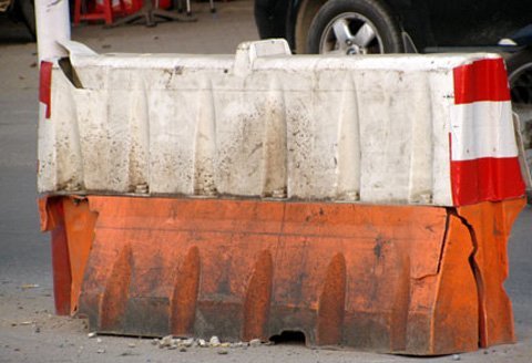 | Nhiều dải phân cách bị đâm vỡ. Ảnh chụp trên đường Giải Phóng chiều 15/11. |