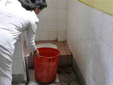 | Xô nước ở nhà vệ sinh Trường Tư thục Hạnh Phước (Ảnh: Tiền phong) |