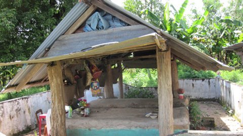 | Khu nhà mồ được chôn theo hủ tục với hàng chục người nằm chung một mộ của làng Bôn Tông Se nằm trong khuôn viên Trường tiểu học Lê Hồng Phong (Gia Lai) khiến học sinh và cả giáo viên đều thấy “rờn rợn” (Ảnh: Dân Trí) |