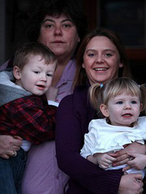 Sarah Ashman (trên, bên trái) và người tình đồng tính của mình Claire đã sinh ra 2 đứa trẻ xinh xắn nhờ tinh trùng của cháu mình (Ảnh: Daily mail)