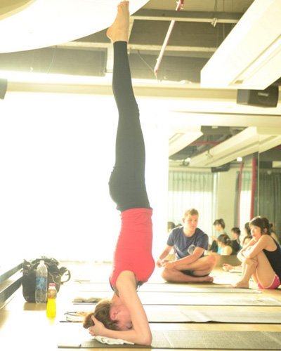 Người đẹp trổ tài trồng chuối ngược... khiến ai có mặt cũng ngạc nhiên tột độ vì sự dẻo dai của cô. (Ảnh: BĐVN) |