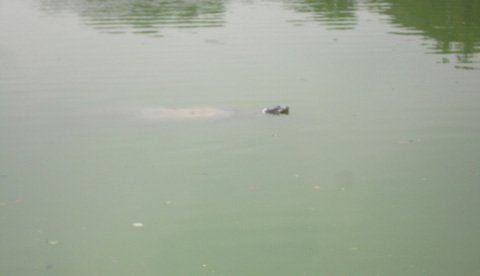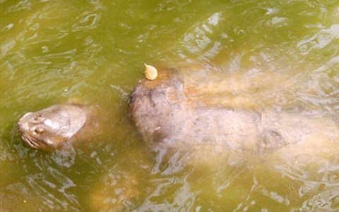 Cụ rùa nổi lên mặt nước và tiến sát vào mép bờ. (Ảnh: GDVN)