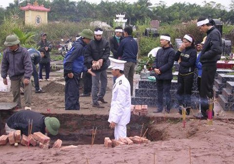 Tại sao người mới chết không được an táng tại khu đất mới mà lại được đưa vào nghĩa trang đã cải táng?. Trả lời câu hỏi này của chúng tôi, một phụ nữ trong đoàn đưa tang giọng run rẩy: "Sợ lắm chú ạ! Nhà này bị trùng tang. Khi mời thầy về cắm cọc thì thầy bảo phải chôn ở vùng này. Thế là phải xin phép làng cho chôn vào nghĩa trang đã cải. Nhiều cụ trong làng cũng nói ra nói vào, nhưng hoàn cảnh người ta thế, đành phải chấp nhận thôi".
