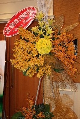 | Lẵng hoa Công Vinh gửi tặng Thủy Tiên nhân dịp cô ra album mới (Ảnh: yume.vn) |
