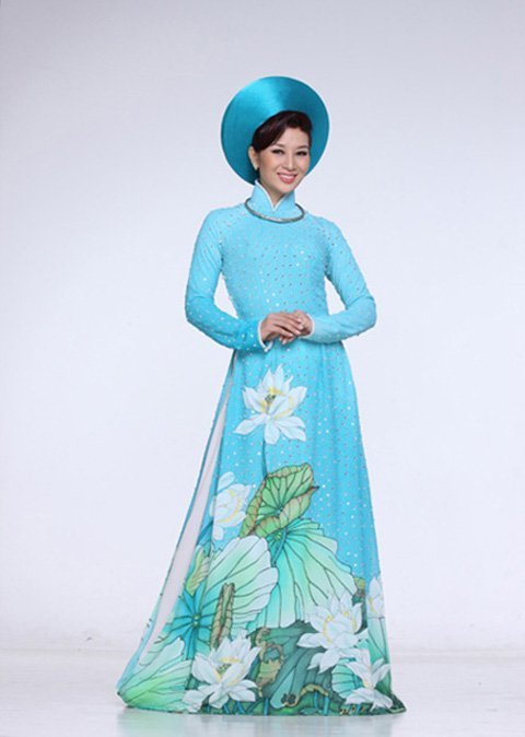 Áo dài Thu Hương chọn trong phần thi trang phục dân tộc.