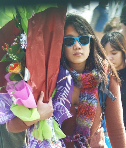 Cô bạn gái Priscilla Chan tỏ ra khá căng thẳng mỗi khi ống kính chĩa về nhóm của họ. Mái tóc xoăn, vẻ trẻ trung của người sáng lập Facebook không thể lẫn dù đã “ngụy trang”.