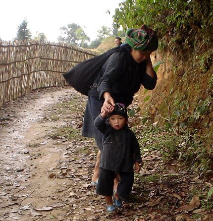 | Mẹ con La Chí ở bản Lủng Cẩu (Bản Phùng). |