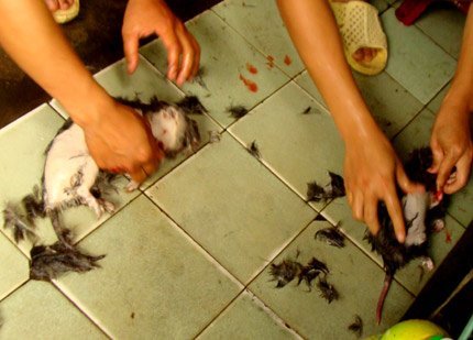 | Chuột nướng, chuột xào và đặc biệt món chuột khô là đặc sản của người La Chí. |