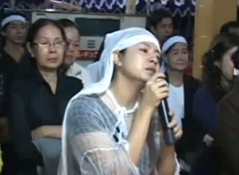 Clip ghi lại cảnh người vợ nghẹn ngào hát “Tìm lại giấc mơ” bên linh cữu chồng: