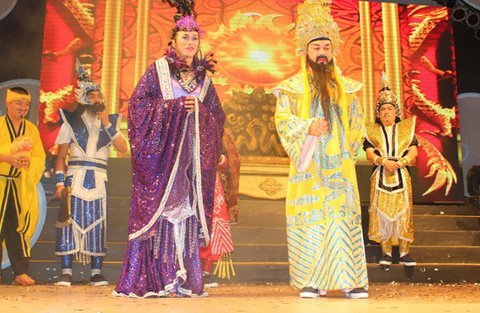 Được chứng kiến những màn giả gái ngọt ngào của Hoài Linh, hàng ngàn khán giả có mặt tại sân khấu Trống đồng không khỏi reo hò, cổ vũ nhiệt tình cho thần tượng.