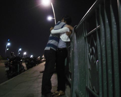 “Lượn xe máy thì bụi mà lại tốn xăng, đi cà phê nhiều cũng chán nên chúng mình hay rủ nhau lên cầu chơi. Đứng hóng gió mát, nói chuyện và ôm nhau...“ – một bạn trẻ chia sẻ.