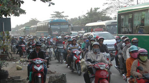 | Dòng người và xe cộ nối đuôi nhau trên quốc lộ 1A (Tuổi Trẻ TP HCM |