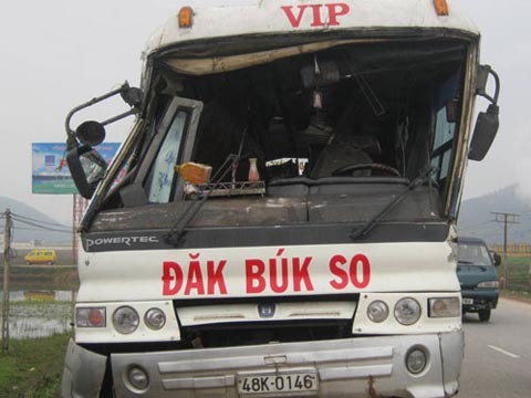 | Chiếc xe khách bị hư hỏng nặng (Ảnh: Người Lao động) |