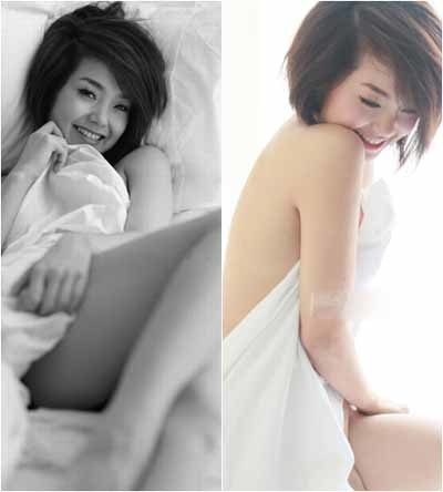 Dù còn rất trẻ song ca sĩ Minh Hằng cũng chọn cách chụp ảnh nude đầy táo bạo. Tuy nhiên, ảnh nude của Minh Hằng vẫn thể hiện rõ sự hồn nhiên và nhí nhảnh của tuổi trẻ. (Ảnh: VietNamNet)