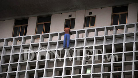 Nạn nhân đã nhảy xuống sau một tiếng treo mình trên không. (Ảnh: Dân Việt)