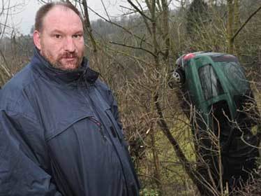 Vào 8h sáng thứ Ba ngày 15/2, David Beasley, 44 tuổi ở Bắc Wales, nước Anh đang lái xe đến công sở thì chiếc xe gặp đường ẩm ướt, trơn trượt đã lao thẳng lên cây và mắc luôn trên một nhánh cây. Mặc dù chiếc xe đã bị treo trên cây, Beasley vẫn mở được cửa xe và xuống đất an toàn.