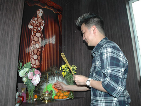 | Phòng thờ, ngoài bà ngoại và ba của Mr Đàm, anh còn hương khói cho NSƯT Thanh Nga |